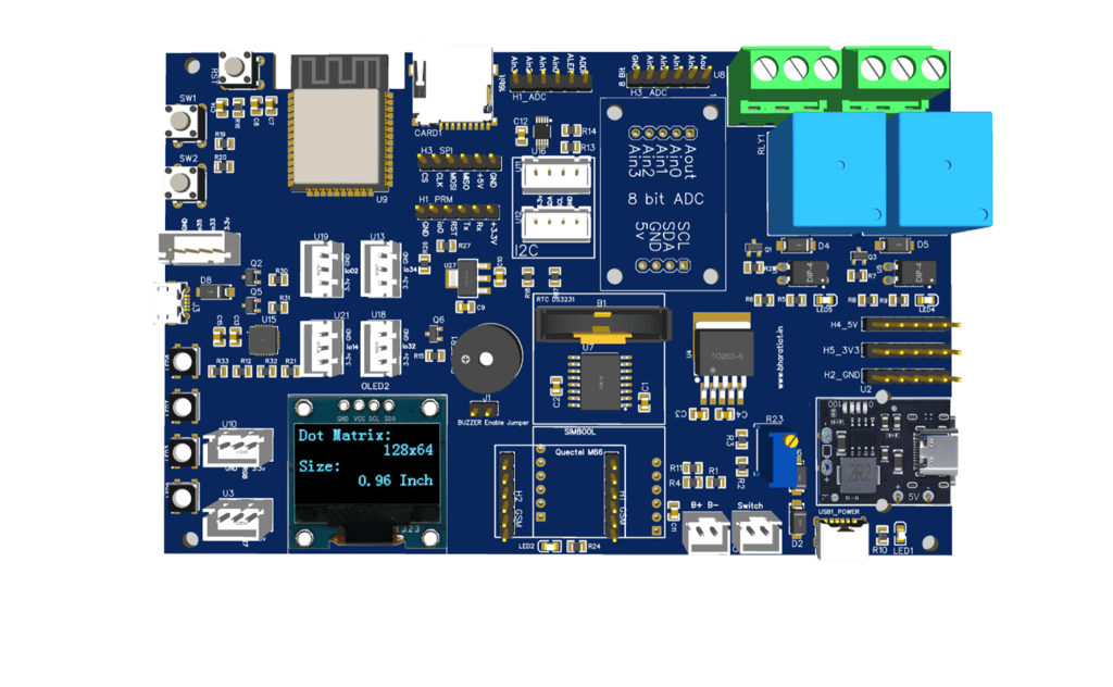 The BharatIoT_V2 board is equipped with a robust lineup of components that make it ideal for various IoT applications: