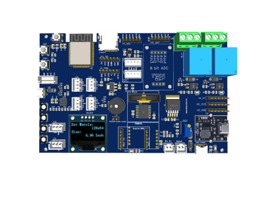The board has been thoughtfully designed with a focus on accommodating various IoT-related developments, including data logging, monitoring, and control. Its key component is a powerful ESP32 WROOM 32 microcontroller with dual-core capabilities, specifically chosen to address the requirements of IoT applications. With its robust processing capabilities, the ESP32 WROOM 32 microcontroller empowers the board to efficiently handle IoT tasks. It can seamlessly handle data logging, enabling the collection and storage of valuable information from connected devices or sensors. Additionally, it facilitates real-time monitoring, allowing users to observe and analyze data streams in a timely manner. The microcontroller's dual-core architecture enhances its multitasking abilities, enabling concurrent execution of multiple IoT-related operations. Furthermore, the board's design ensures compatibility with a wide range of IoT peripherals and communication protocols. It offers various interfaces and connectivity options, enabling seamless integration with sensors, actuators, and other IoT devices. This versatility allows for flexible control and interaction with the connected ecosystem.