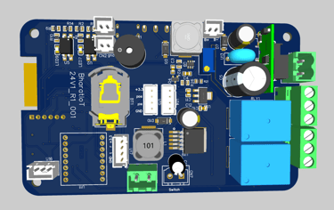 Peripheral Control: The board features two relays for controlling external devices and includes two high voltage inputs. It also supports I2C LCD or OLED displays for advanced user interfaces and can connect to HMIs via a UART port.